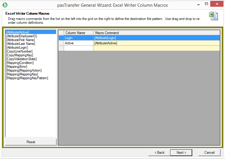 Welcome to part three of our multipart pasTransfer Universal Connection series. Today, I am going to introduce you to the pasTransfer Excel Spreadsheet connections and give you an overview of how the connections can be used to read and transform Excel spreadsheets. The Excel Spreadsheet connections consist of a source and destination connection that are capable of processing the vast majority of Excel files without the need for a custom connection. The Excel Spreadsheet source connection uses Microsoft OLEDB ACE and JET providers to query excel documents. Microsoft updates have resulted in the JET provider no longer functioning properly, so we have updated pasTransfer and wrote a blog article explaining the steps we have taken to help get around this issue. You can read more about it in the pasTransfer 4.25.2.0 RTM blog article in pasUnity Products. Excel Spreadsheet Source Connection The Excel Spreadsheet source connection allows you to import data from many Excel workbooks by querying the workbook as a database using OLEDB. We query a worksheet, range, or named region in the workbook, and read each row of data one at a time. Unlike other connections, we are able to read data from the workbook without having to open Microsoft Excel in the background. With that said, you do need Excel for some features, such as opening the workbook in Excel. Once a workbook has been selected for processing, you must provide an Excel provider and a data region to process. The data providers vary across machines and platforms, so it is important to have the correct providers and version of Excel installed. For pasTransfer 32 bit, you must have Excel 32 bit and the Microsoft Access Database Engine 32 bit installed. If you’re using pasTransfer 64 bit, then you must have the 64 bit versions installed. The data region can be a worksheet, a range within a worksheet, or a named range. Clicking the refresh button will display the worksheets and named ranges in the workbook. If nothing appears in the dropdown when you click refresh, the provider you have chosen will not work with the selected workbook. In the following example, my workbook contains a region named Employees and I have used this named range for my data region. After you have selected your data region and chosen the correct provider, you can begin mapping fields. All columns detected from your data region are listed on the left side. If you don’t have column names in your source data, we generate generic names to help identify each column. From here, you can click and drag the column names to macro-enabled fields to generate a basic COLUMN macro command. Below, you can see how I have mapped two columns from my source file to be imported using the General wizard. The general wizard does not have many requirements, so this screen may contain different options depending on which wizard you are in. After you have provided values for each field, click next to provide any additional details required for the wizard, and finally import your data. After data has been imported, you can apply a summarizer, mappings, and many other additional features. Finally, it is time to move on to the destination configuration. Excel Spreadsheet Destination Connection The Excel Spreadsheet Destination Connection allows us to create a flat-structured Open XML spreadsheet that Excel and multiple other applications can read. This means that we can create a file without having to open Excel. The configuration for this connection is fairly simple. First, you need to provide a name for your spreadsheet, and various other options such as whether you want to include column names and filters. After you choose these basic configuration options, you can begin mapping fields to the new spreadsheet. On the left hand side is a list of all attributes that have been detected from the source data. Each row in the grid on the right defines a column on the excel spreadsheet, and the macro command defines how that column is populated. You can drag the detected macros from the left hand side over to the grid to copy the macro command. Below, you can see how I have defined 2 columns for my spreadsheet and the macro commands associated with each one. Conclusion We have now introduced you to the pasTransfer Excel Spreadsheet universal source and destination connections. You have learned how to use pasTransfer to import data using the Excel Spreadsheet source connection and transform that data into a completely different Excel spreadsheet with filters using the Excel Spreadsheet destination connection. We hope you found this part of series educational and informative. Come back next week for part four of our series introducing the SQL Server universal connections. |
